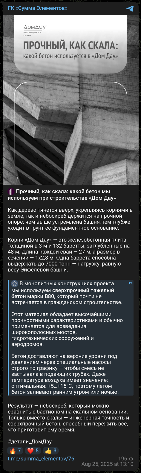 Пример. Раскрыть одну и ту же тему можно по-разному, как мы сделали в постах об архитектуре проекта «ДОМ ДАУ»: